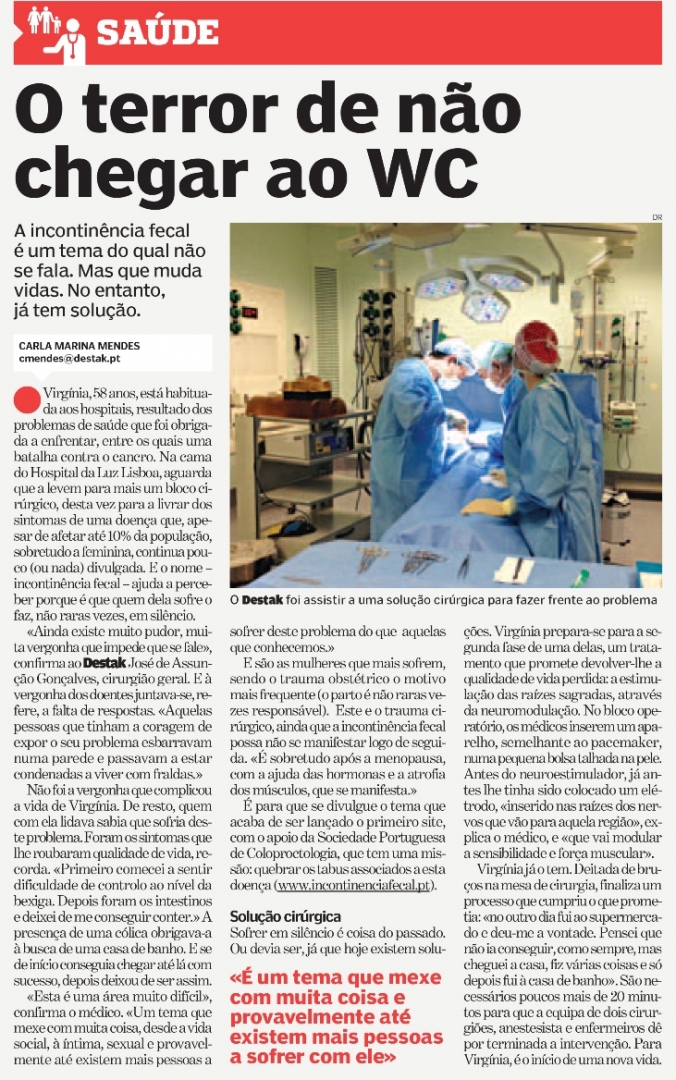 Incontinência fecal: O tema do qual não se fala mas que muda vidas, já tem solução! Os Colegas da SPCP a acompanhar os desenvolvimentos técnicos na linha da frente